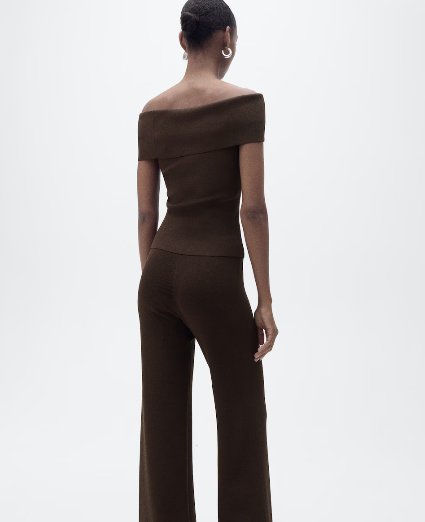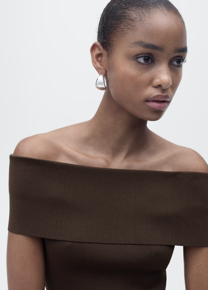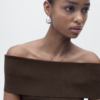 Tejido de punto. Diseño entallado. Hombro descubierto. Diseño off-shoulder. Manga corta. Sin cierre.